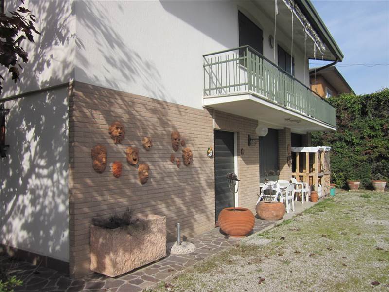 Disposta su due piani, con grande garage e abbondante giardino. Il piano inferiore (terra) comprende, oltre al garage, un grande magazzino, ripostiglio e un servizio con wc. Il piano superiore, invece, cui si accede anche esternamente, comprende, dopo il terrazzo e l'ingresso, una grande zona giorno con cucina separata, disimpegno, tre camere di cui due con terrazzino, bagno finestrato. Le foto dimostrano che la casa è in buone condizioni generali, curata in molte finiture e non necessita di nessun intervento indispensabile. Libera in breve tempo.