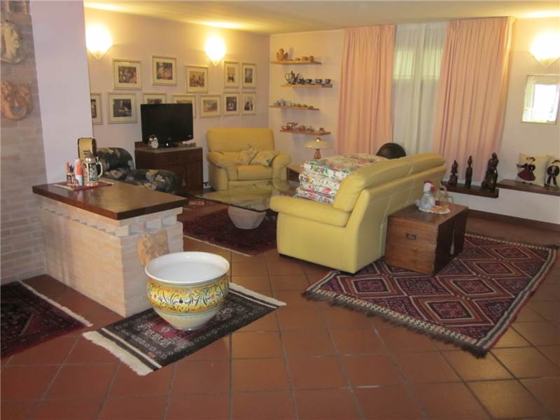 Disposta su due piani, con grande garage e abbondante giardino. Il piano inferiore (terra) comprende, oltre al garage, un grande magazzino, ripostiglio e un servizio con wc. Il piano superiore, invece, cui si accede anche esternamente, comprende, dopo il terrazzo e l'ingresso, una grande zona giorno con cucina separata, disimpegno, tre camere di cui due con terrazzino, bagno finestrato. Le foto dimostrano che la casa è in buone condizioni generali, curata in molte finiture e non necessita di nessun intervento indispensabile. Libera in breve tempo.
